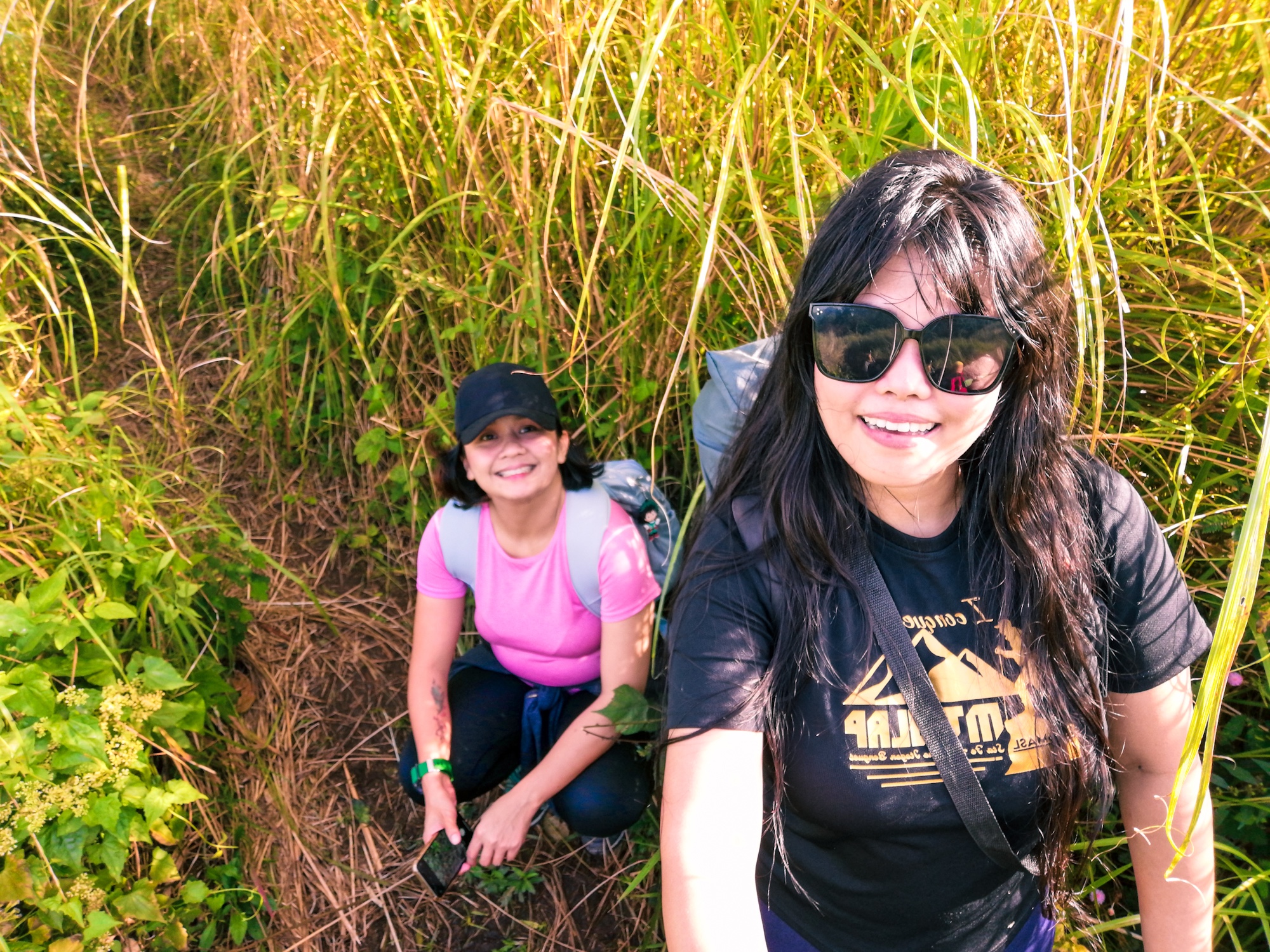 The ascent to the summit from the campsite was really easy. It was moderately steep all the way through. The tall grass still obscured part of the trail and was sassy enough to give our faces some spanking. We reached the summit after 10 minutes and the 360-view of the lake, the nearby mountains and the metro from the distance entertained us for a while. It was such a beauty and one I truly appreciate especially after months of not being able to stand on a mountain peak. I could say several more adjectives to describe it but I let the photos and my fulfilled heart speak for it.